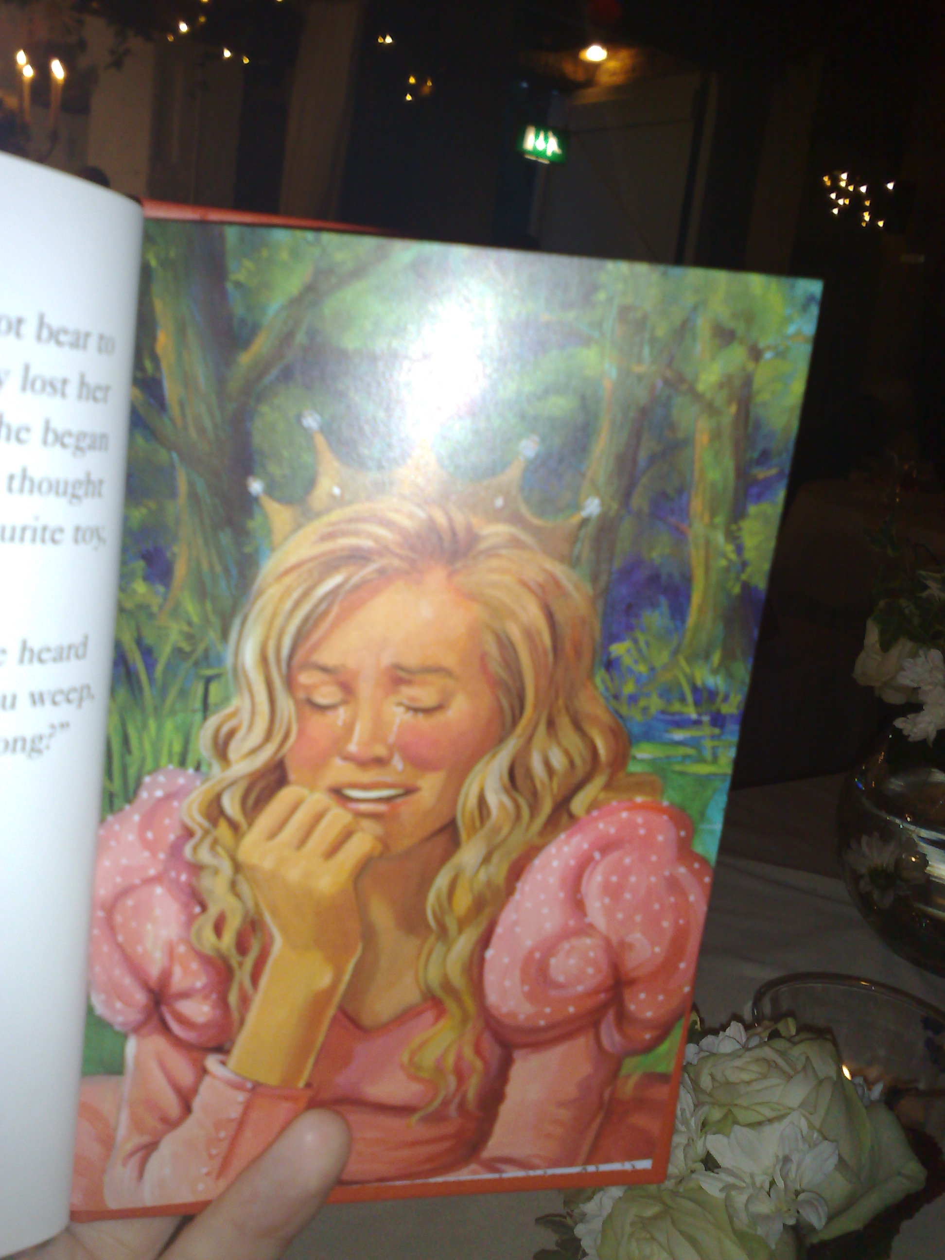 she thought about the loss of her favourite toy, the louder she cried. As the princess wept, she heard a voice saying, "Why do you weep, young princess? What is wrong?". |