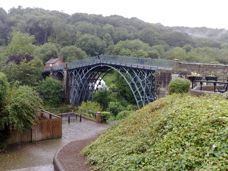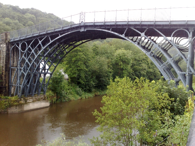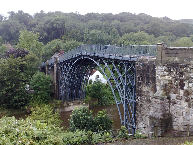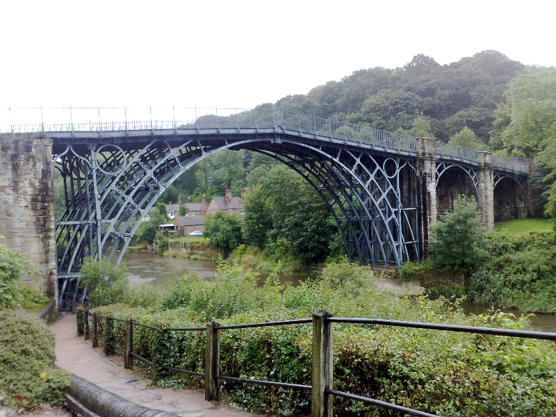 The area around Ironbridge is described by those promoting it as a tourist destination as the “Birthplace of the Industrial Revolution”. This description is based on the idea that Abraham Darby perfected the technique of smelting iron with coke, in Coalbrookdale, allowing much cheaperproduction of iron. Smelting iron by Darby was but one small part of this generalised revolution and was soon superseded by the great iron-smelting areas. However, the bridge – being the first of its kind fabricated from cast iron, and one of the few which have survived to the present day – remains an important symbol representative of the dawn of the industrial age. The grandson of the first Abraham Darby, Abraham Darby III, built the famous bridge – originally designed by Thomas Farnolls Pritchard – to link the two areas. Construction began in 1779 and the bridge opened on New Year’s Day 1781. Soon afterwards the ancient Madeley market was relocated to the new purpose built square and Georgian Butter Cross and the former dispersed settlement of Madeley Wood gained a planned urban focus as Ironbridge, the commercial and administrative centre of the Coalbrookdale coalfield. The Iron Bridge proprietors also built the Tontine Hotel to accommodate visitors to the new Bridge and the industrial sights of the Severn Gorge. On the hillside above the river are situated the stone-built 16th century hunting Lodge at Lincoln Hill, many 17th and 18th century workers cottages, some imposing Georgian houses built by ironmasters and mine and canal barge owners, and many early Victorian villas built from the various coloured bricks and tiles of the locality. St Luke’s Church (1837) in simple Commissioners’ Gothic by Samuel Smith of Madeley, has stained glass by David Evans of Shrewsbury. The living was endowed as a rectory when the parish was created from Madeley in 1847 and is now a united with Coalbrookdale and Little Wenlock, in the Diocese of Hereford. The former Iron Bridge and Broseley railway station, on the Severn Valley line (GWR) from Hartlebury to Shrewsbury, was situated on the south side of the Iron Bridge until 1966.