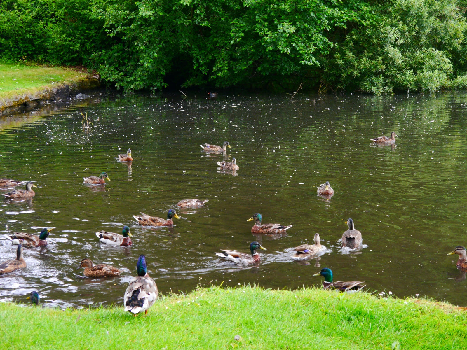 Anyway, I took to opportunity to take some close ups of the beautiful flowers about the grounds, grabbed one of a bee at work and some of the ducks frolicking in the pond.
